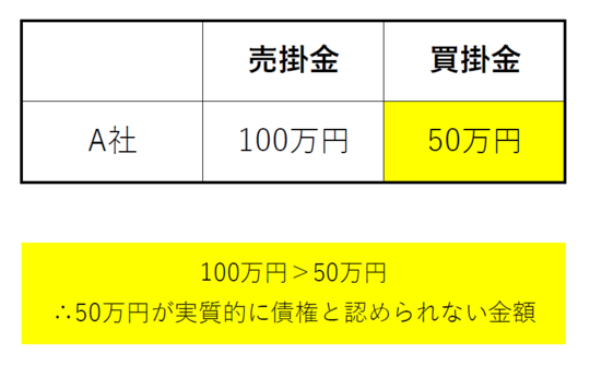 同じ取引先について、債権と債務がある場合、いずれか少ない金額が