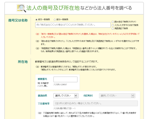 検索にひっかかった会社の会社名・所在地・法人番号を