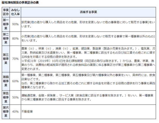 簡易課税のみなし仕入率は、業種によって異なります。