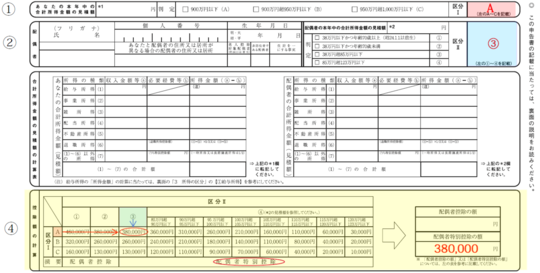 従って、右の配偶者特別控除の額に、380,000円と記載して、