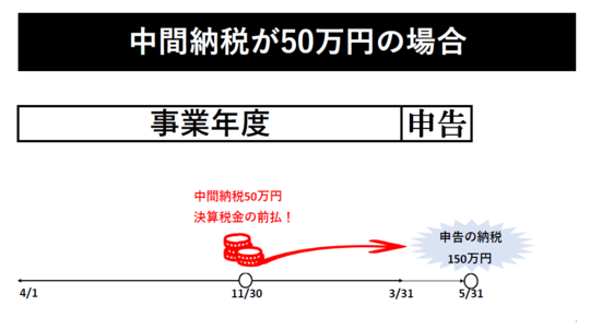 決算で一度に納税するより、中間と確定申告で2回に分けて