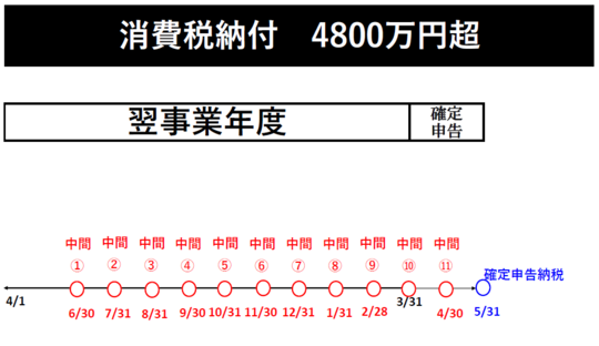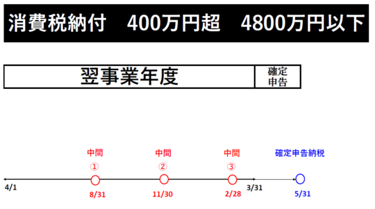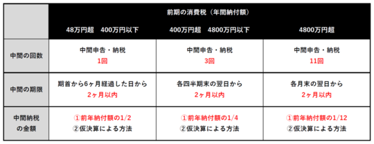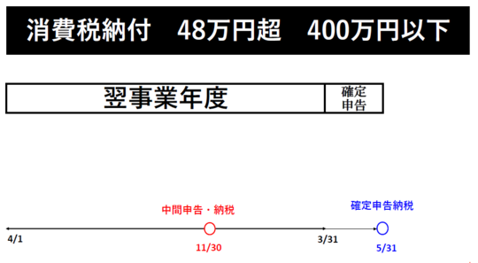中間納税とは、消費税の年間納付額が48万円を超えると、