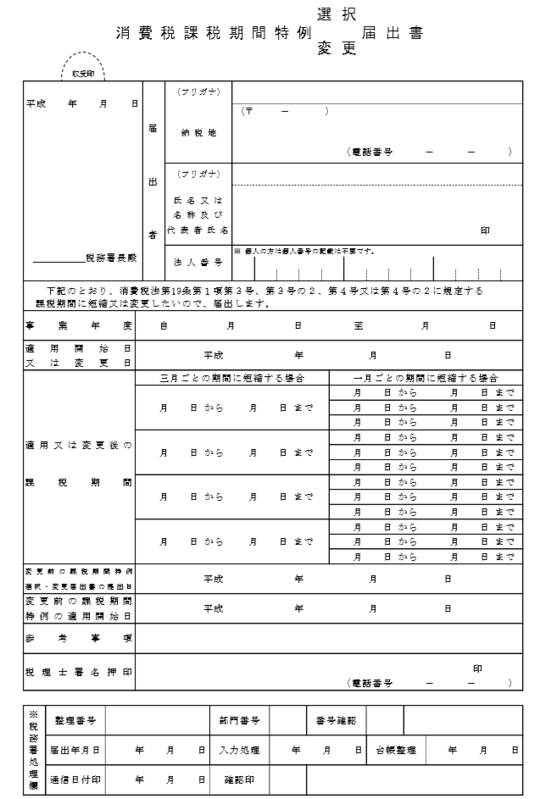 適用を受けた日から、2年間は短縮期間毎に消費税申告を行う
