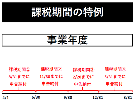 3ヶ月単位又は1ヶ月単位を課税期間として計算し、
