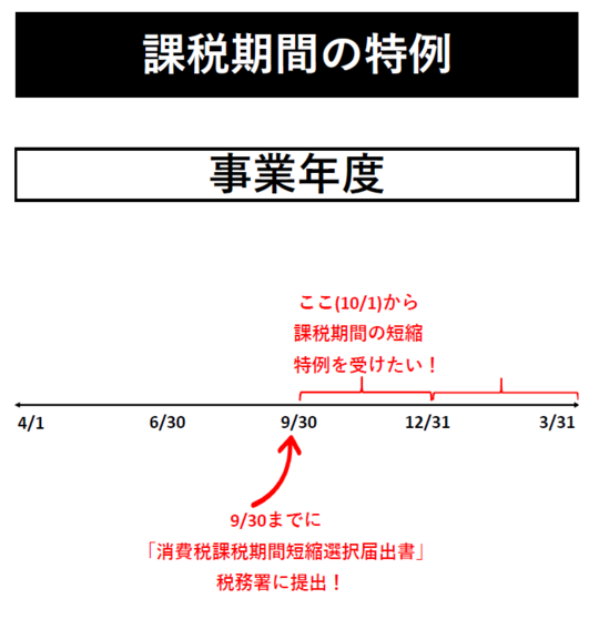 この「消費税の課税期間の短縮の特例」を適用すれば、