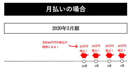 つまり、実際は2月に60万円(20万円×3ヶ月分)が引落です。