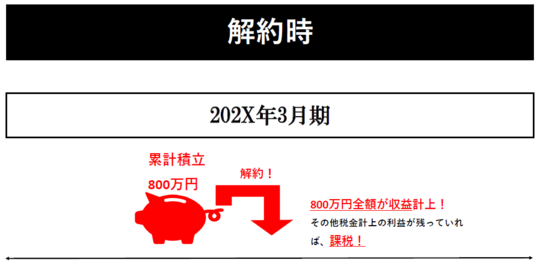 積立時に経費算入、解約時にそのまま課税されるのであれば、