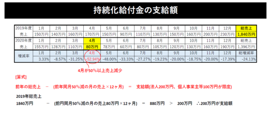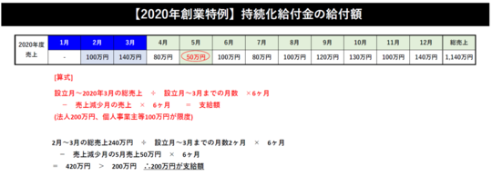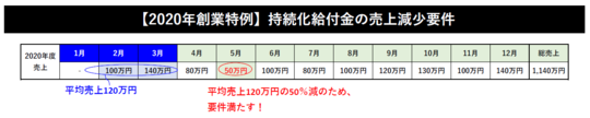 そして、「持続化給付金の2020年創業特例」売上要件は、