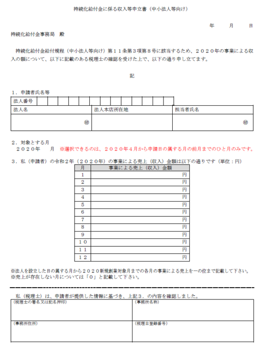 その代わり、新たに「持続化給付金に係る収入等申立書」というものがありますね。