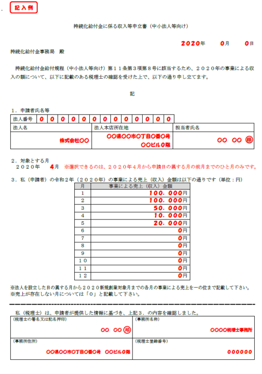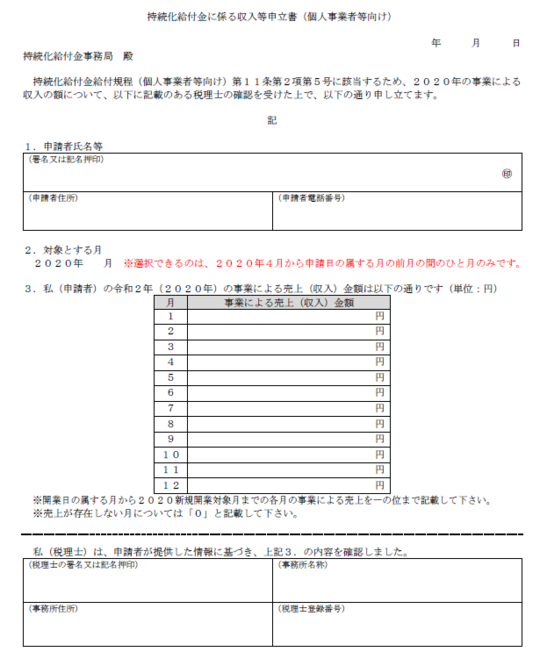 「持続化給付金に係る収入等申立書」は税理士が実際に売上を確認して、