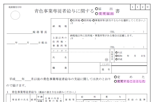 増額を考える場合、「青色事業専従者給与に関する変更届出書」の