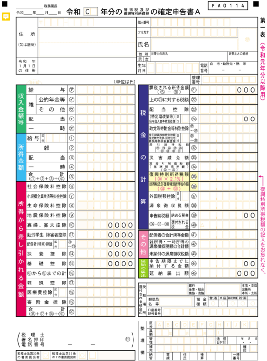 上記は、実際の所得税の確定申告書です。