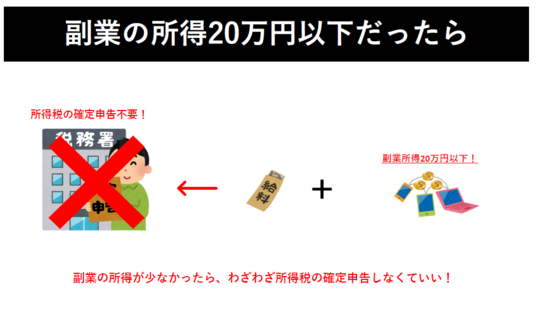 副業所得が20万円以下の場合、所得税の確定申告はしなくてもいいけれど、