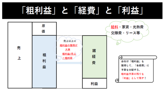 会社は「粗利益」を獲得して、その「粗利益」を各「諸経費」に分配して、