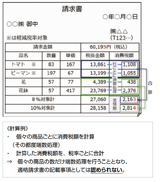 右は同じ税率でも何回も端数処理をしているので不可です。