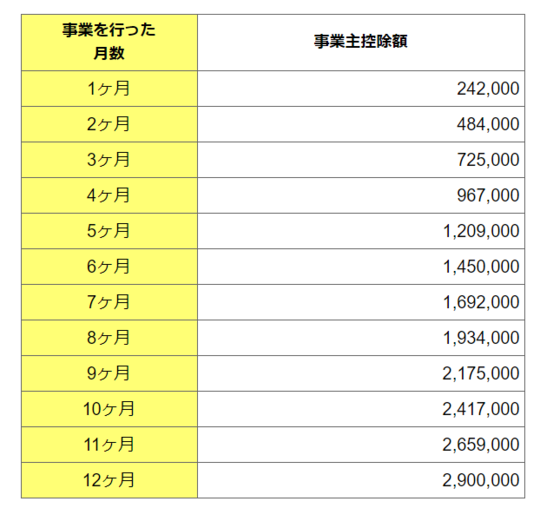 事業主控除は、1年間通して事業を行っている場合は、290万円です。