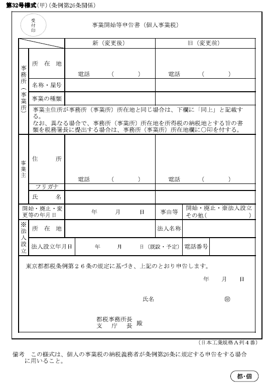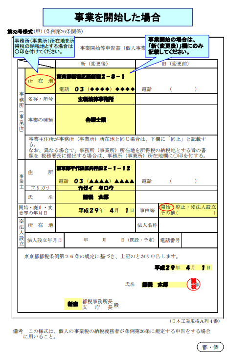 「県税事務所」宛てに「事業開始等届出書」を提出しておきましょう。