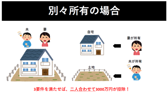 家屋の所有者と土地の所有者は二人合わせて3000万円特別控除です。