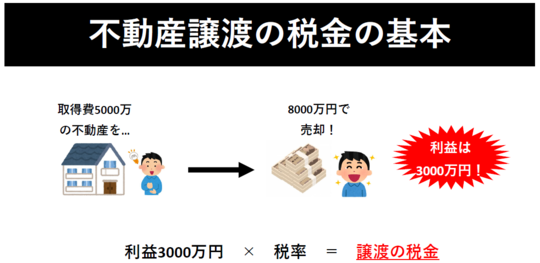 不動産を売却して利益が出た場合、利益に応じて高い税金がかかります。