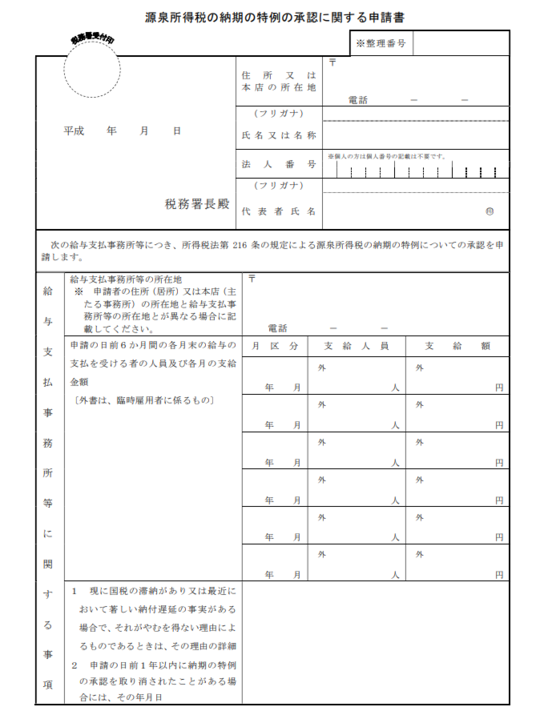 源泉所得税の納付が「1ヶ月分を毎月納付」→「半年分を半年に1回」納付に