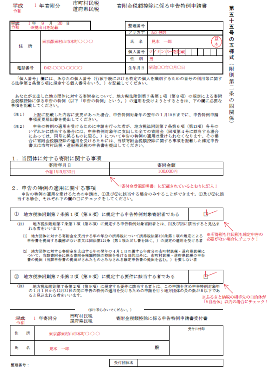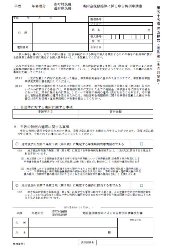 続いて、面倒な方の「寄附金税額控除に係る特例申請書」の解説です。