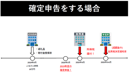 例えば、2019年9月に10万円のふるさと納税を行ったとします。