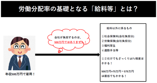 年収500万だと、会社が負担する「給料等」は最低575万円です。