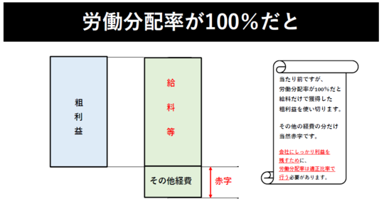 「給料等(人件費他)」 ÷ 粗利益 = 労働分配率