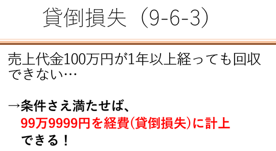 回収できない場合、売上代金相当額を経費に計上できる可能性があります。