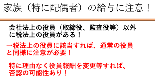 会社法上の役員以外でも税法上の役員に該当するケースがあり、同様に扱われますので、注意が必要です。