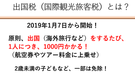 今回はこの出国税(国際観光旅客税)について詳細に解説しております。