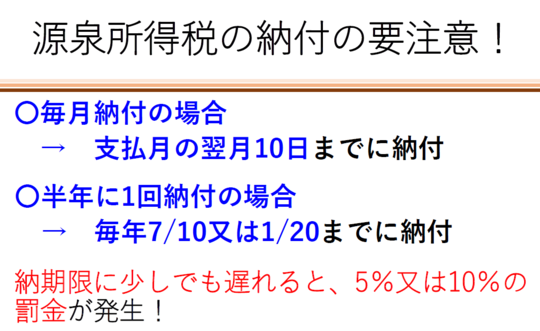 今回のコラムでは、源泉所得税の納期限の説明と「不納付加算税とは?」の解説をしております。