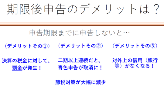 では、法定申告期限に間に合わなかった場合どのようなデメリットがあるのでしょうか?