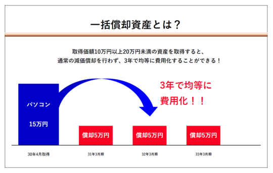 今回のコラムでは『一括償却資産の解説』『一括償却資産にしかないメリット』を中心にかいせつしております。