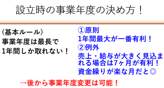 事業年度のルールと設立時の事業年度の一番良い決め方を解説しております。