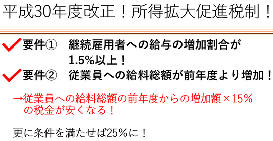 この「所得拡大促進税制」について平成30年度改正で大幅に変わりました!