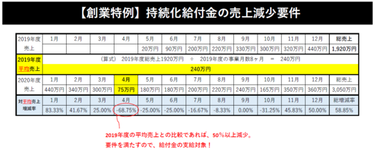 しているので、「持続化給付金の2019年創業特例」を使えば、要件を満たし