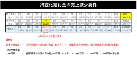 今回はこの「持続化給付金」について実際の計算例も含め
