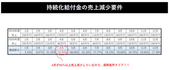 前年同月比較で50%以上減少していれば、対象となります。
