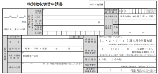 「(住民税の)特別徴収税額の納期の特例に関する申請書」